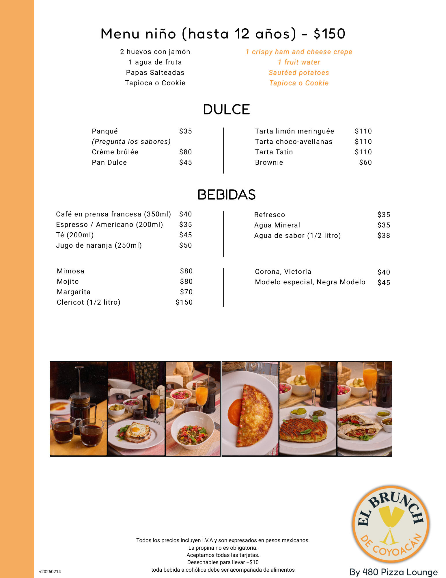 -Café de prensa / Té -Agua de Fruta -Plato de Frutas -Plato Fuerte -2 guarniciones -Postre Por solo $235